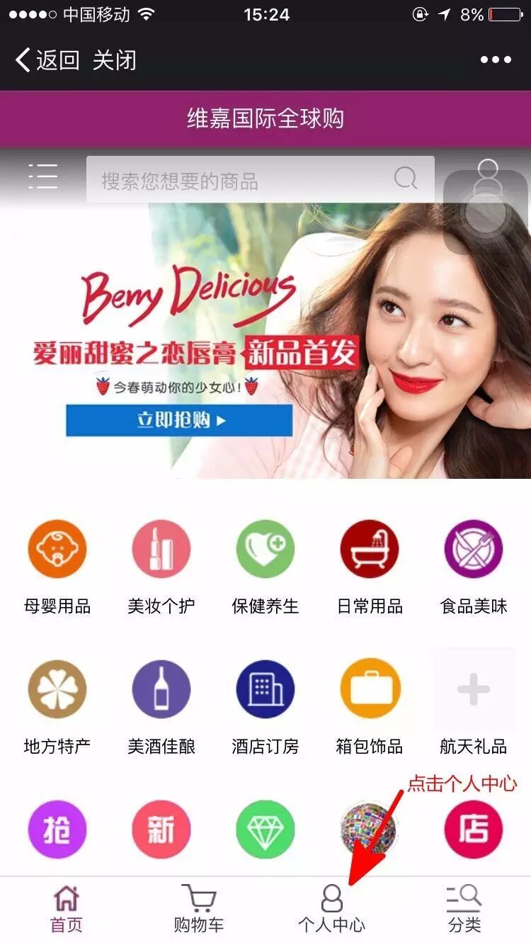 a、进入维嘉国际全球购商城点击个人中心