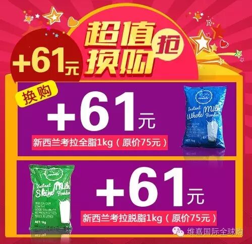 新西兰cowala 考拉脱脂奶粉1kg(原价75元)