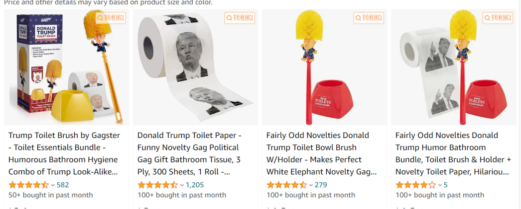 需要注意的是,即使亚马逊平台可以上架售卖这些产品,但是特朗普作为公众人物
