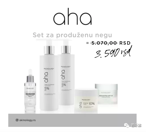 在治疗前后几天或秋冬季节,每年数次,连续使用两周,将其用作治疗AHA酸的制剂。早晚用牛奶清洁肌肤,用手指轻揉全脸及周围,用温水冲洗干净。用棉签涂抹爽肤水。涂抹血清,等待几秒钟使其吸收,然后涂抹面霜,早上使用 SPF25,晚上使用 AHA 面霜。