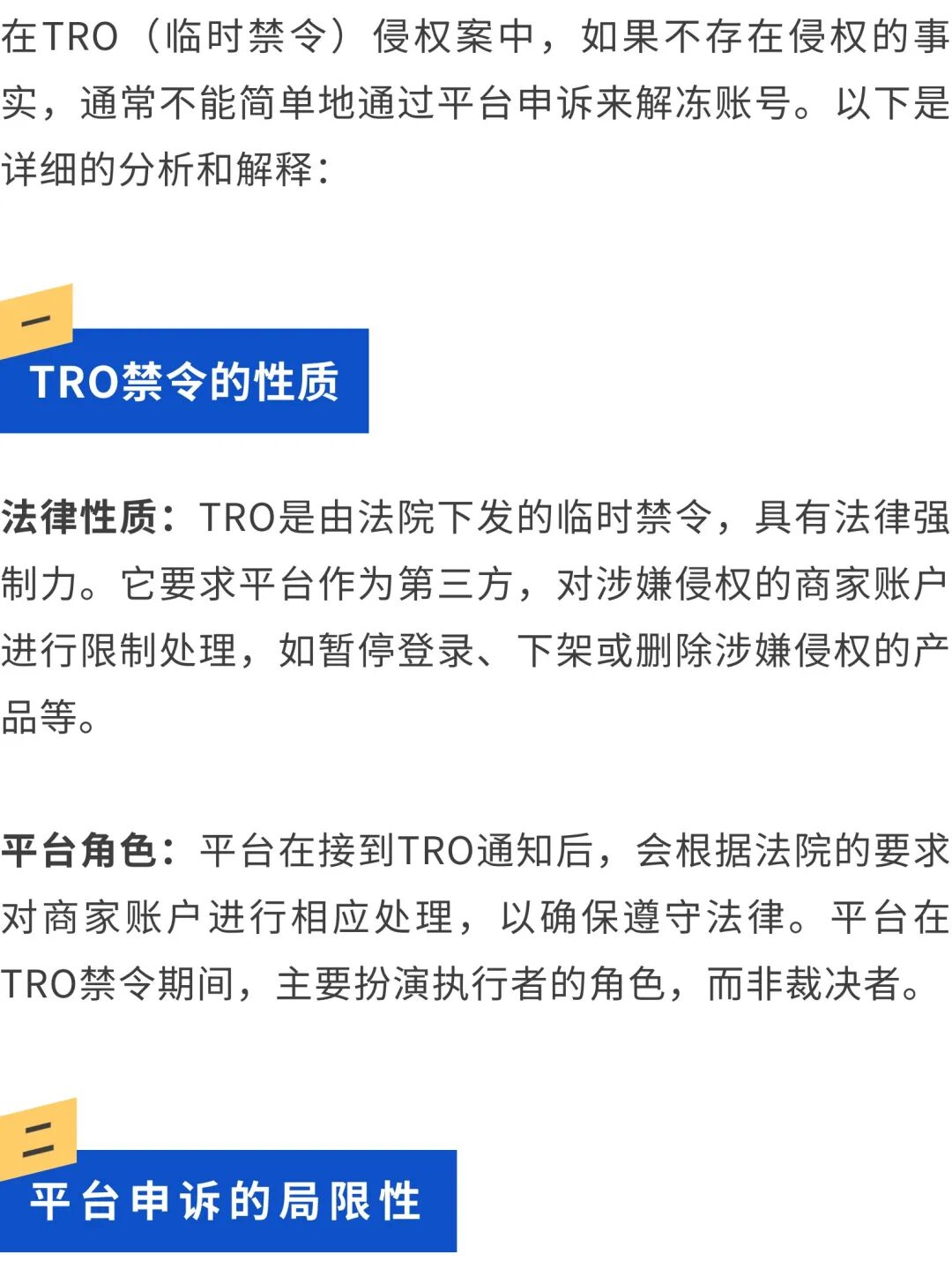 收到TRO,如果不存在侵权事实,如何申诉解冻账号?