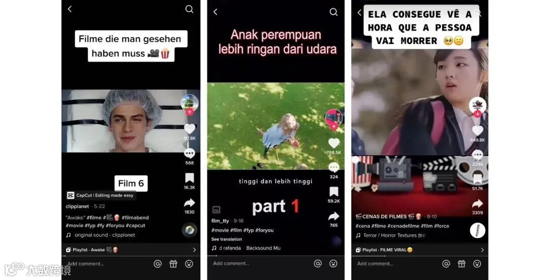 一些创作者选择在TikTok上发布电影解说短视频这些视频基本与国内的模式相同,仅仅只是配音和字幕被AI换成了其他国家的语言。