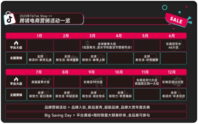TikTok Shop表示,2023年将实现各大区域市场重要营销节点的全覆盖,增强营销活动对商家生意增长的促进作用。比如,东南亚的斋月、双十一、双12大促,英国的复活节、夏季大促、黑色星期五、网络星期一等。