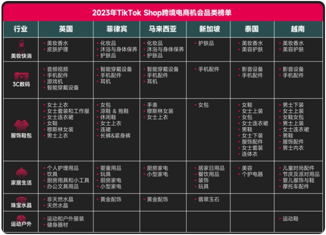 TikTok Shop表示将会继续在全球开拓新的国家市场,开放跨境入驻。在东南亚、英国等泛英语国家,支持商家利用英语语言成本优势,增加优质内容和商品供给,实现一店卖全球的模式。在品类经营方面,TikTok Shop表示将通过精准的人群洞察,给到不同国家市场机会类目推荐,鼓励商家在垂直类目上深耕,提升品类经营的专业度,积累更精准的用户资产。