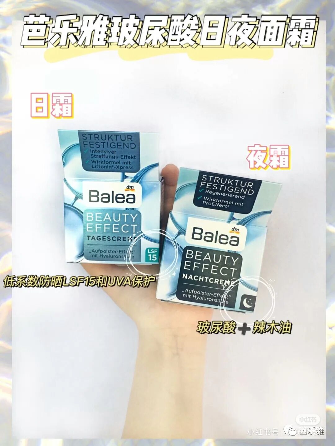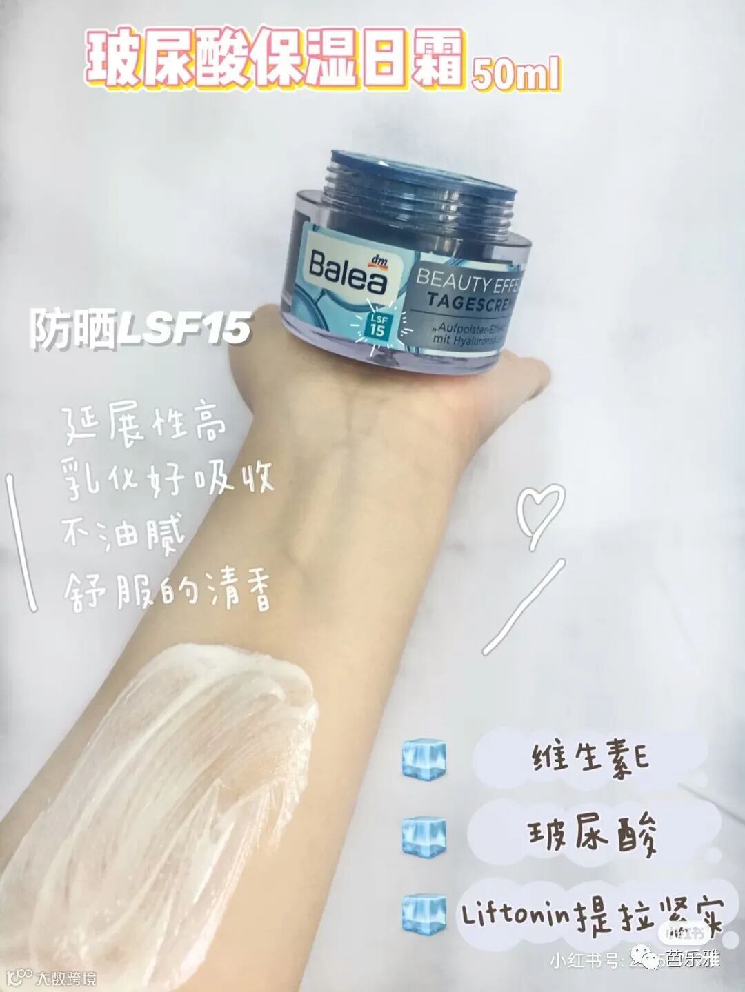 眼瞧着夏天就要到了,想找一款带有防晒值的面霜在学校用😝刚好闺蜜看了李佳琦的直播后给我推荐了Balea芭乐雅玻尿酸日晚霜,所以我也跟风种草了嘻嘻,Balea芭乐雅是dm德国超大药妆店旗下的品牌(之前入过他家的眼霜and脱毛膏都巨好用还平价!)所以这次也闭眼安心入了