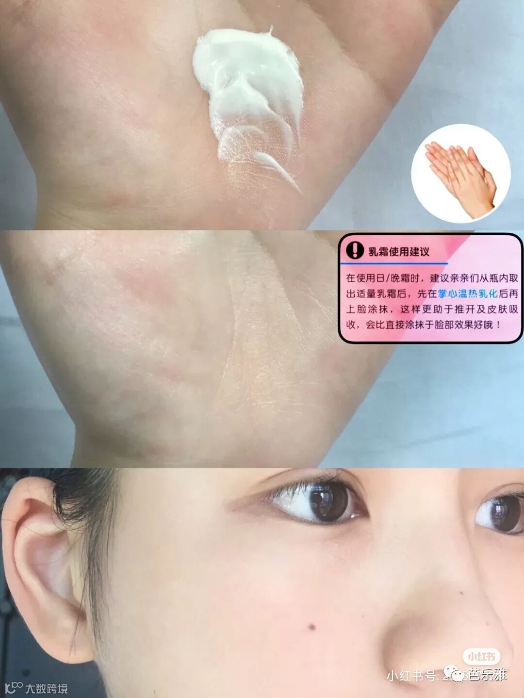 ❗️使用方法:我一般都是挖出一块硬币大小在掌心乳化至半透明再上脸拍打涂抹,这样有助于皮肤更好的吸收
