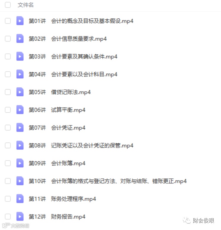资料说明:本视频教程对会计基础知识有了一个系统全面的讲解,教程共计12个视频,平均每个视频在30分钟内,适合初级会计成员和刚入门的财务人员速成掌握。