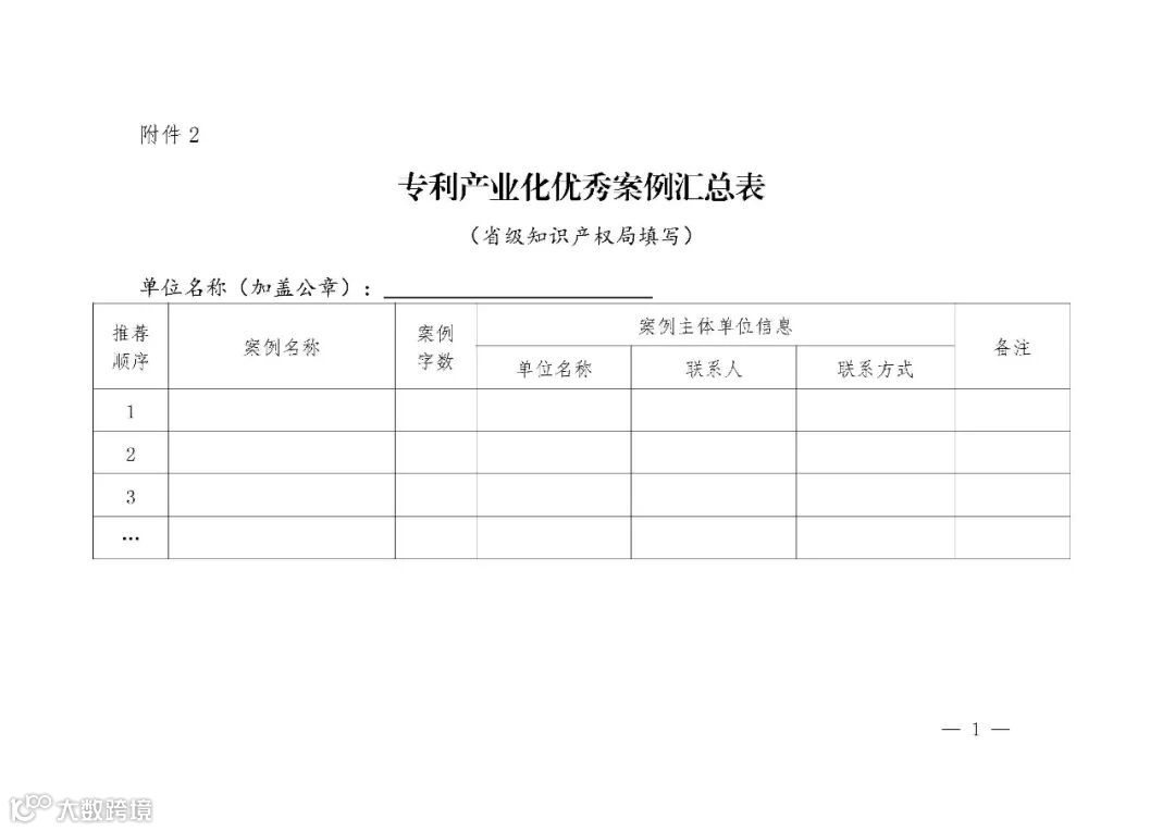 (一)请各省级知识产权局认真做好案例征集的组织工作,提高案例报送质量。各地可结合工作实际,创新开展本地区专利产业化优秀案例征选,同时注意积累相关视频素材,以便开展宣传工作。