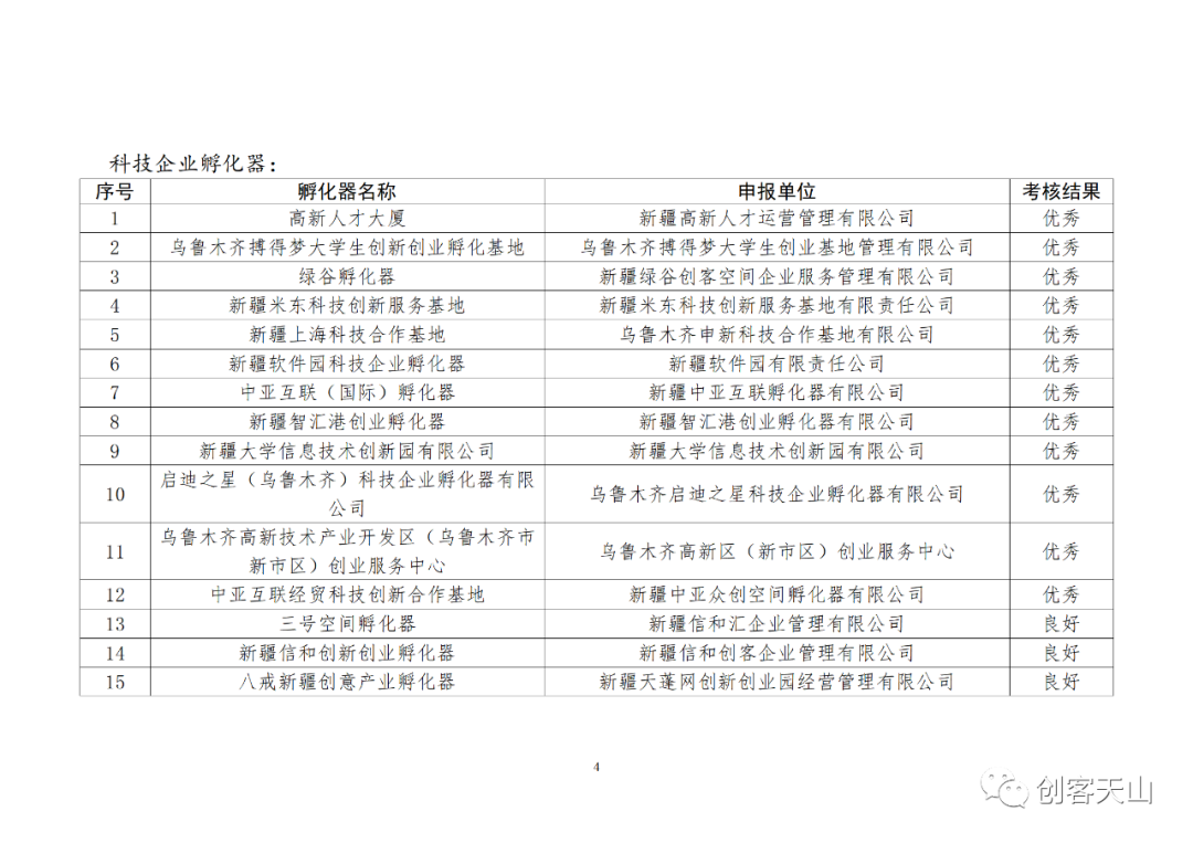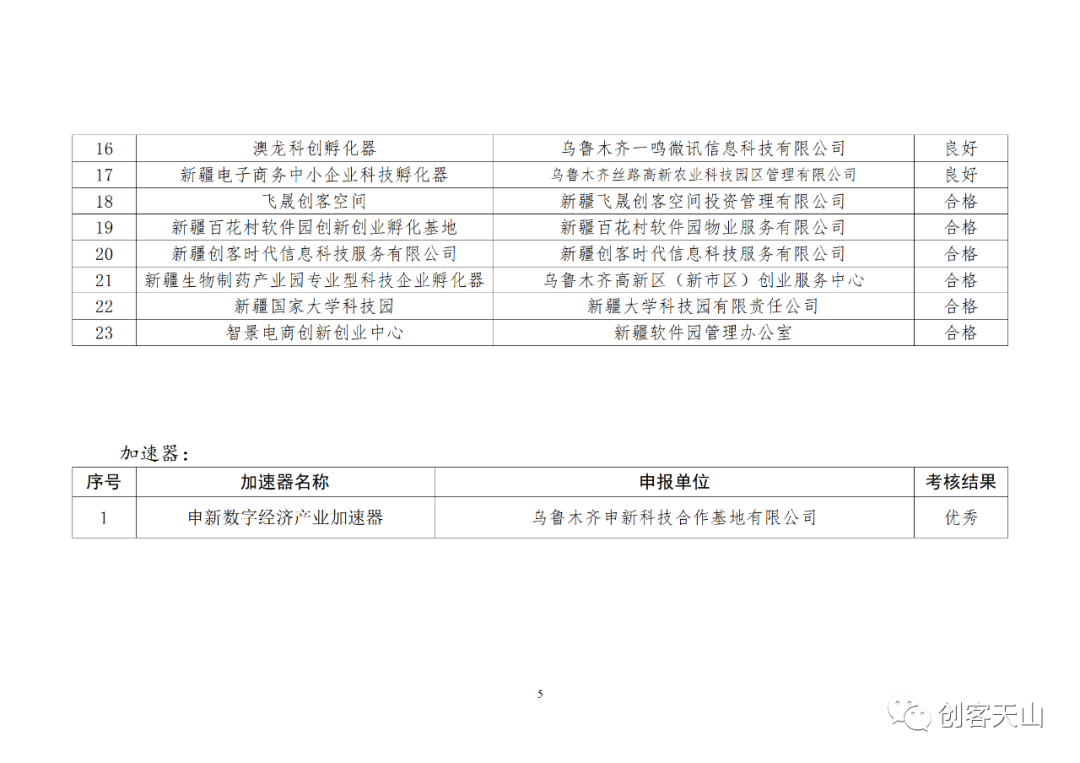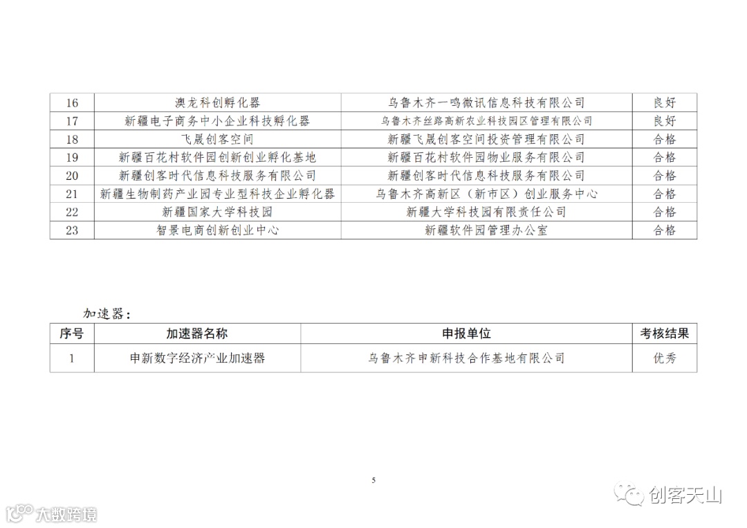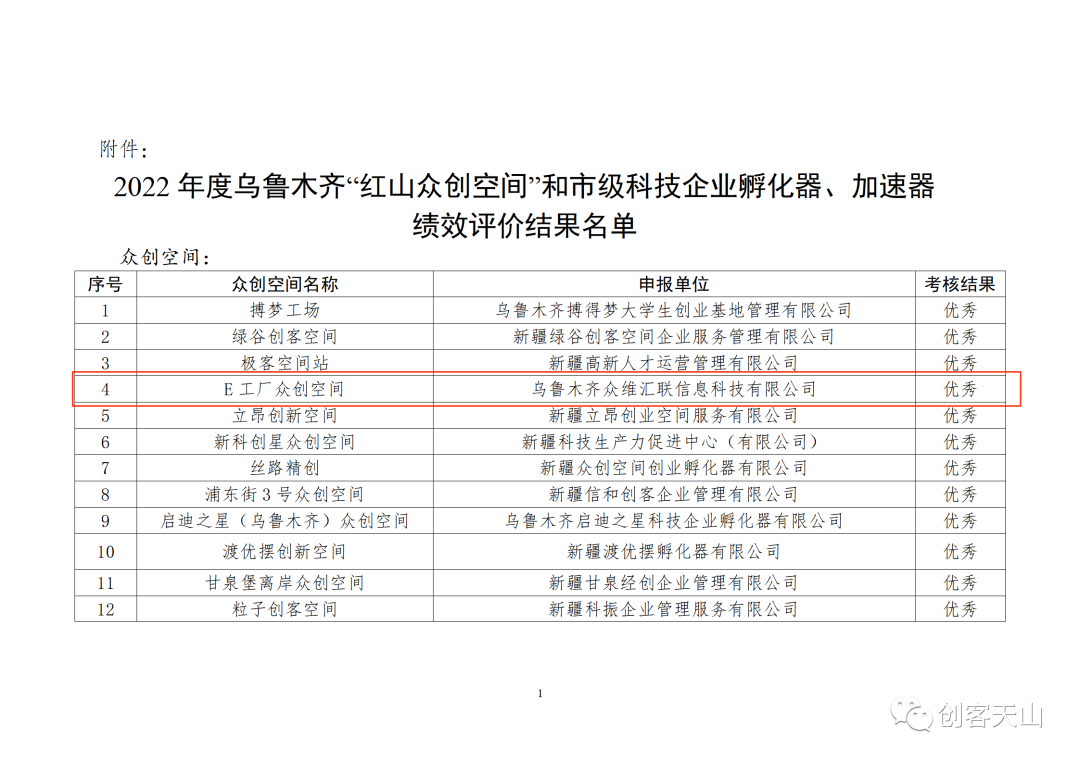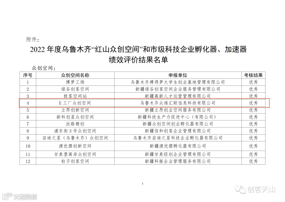 2022年度乌鲁木齐“红山众创空间”和市级科技企业孵化器、加速器绩效评价结果的名单.docx