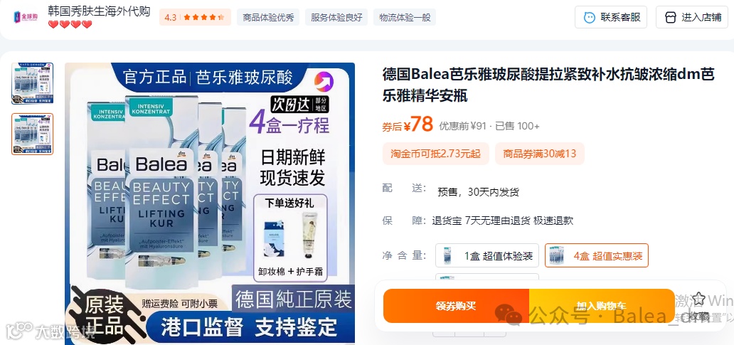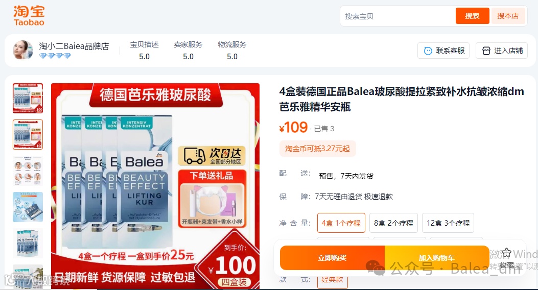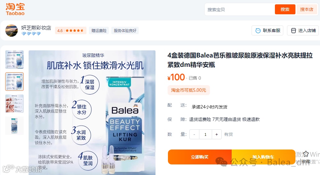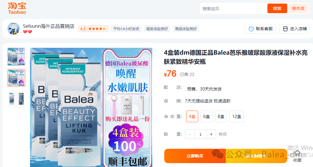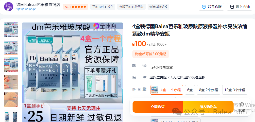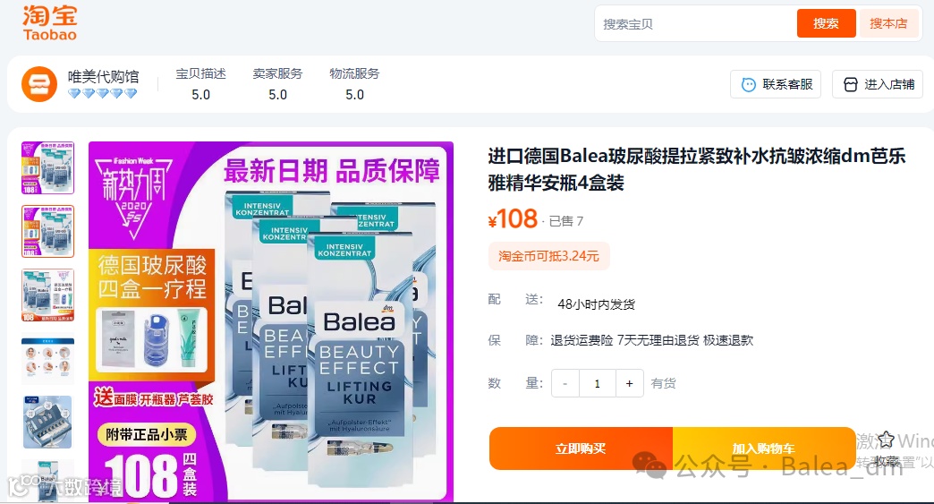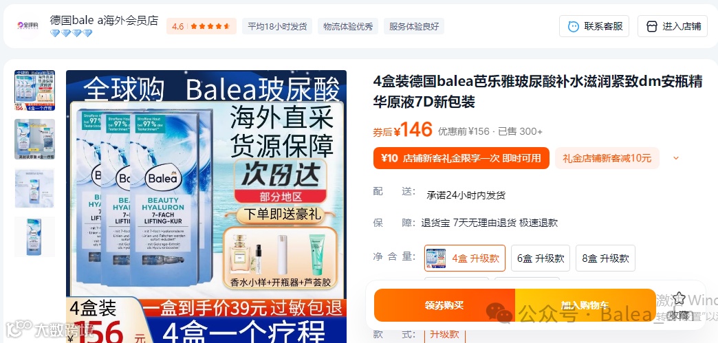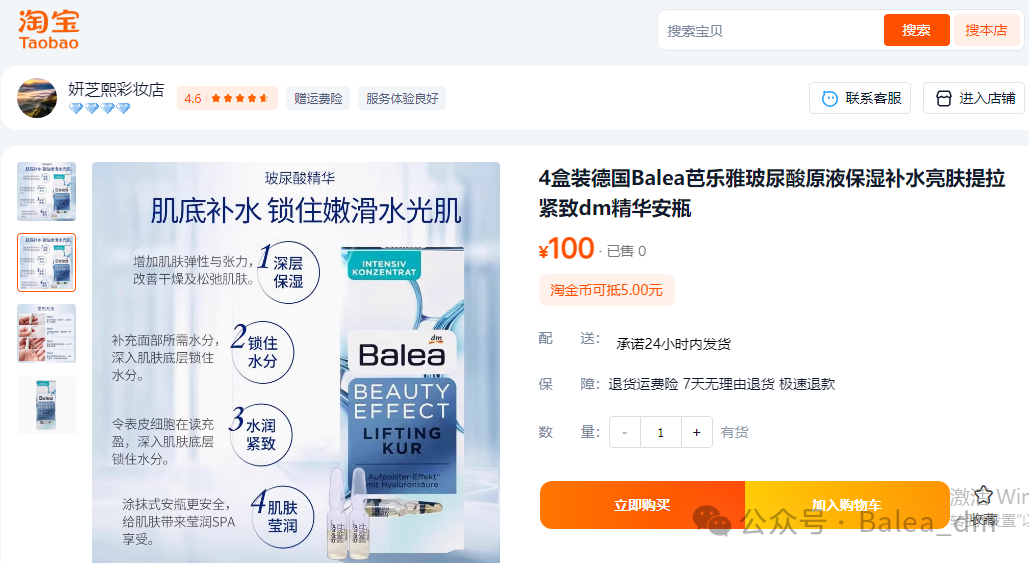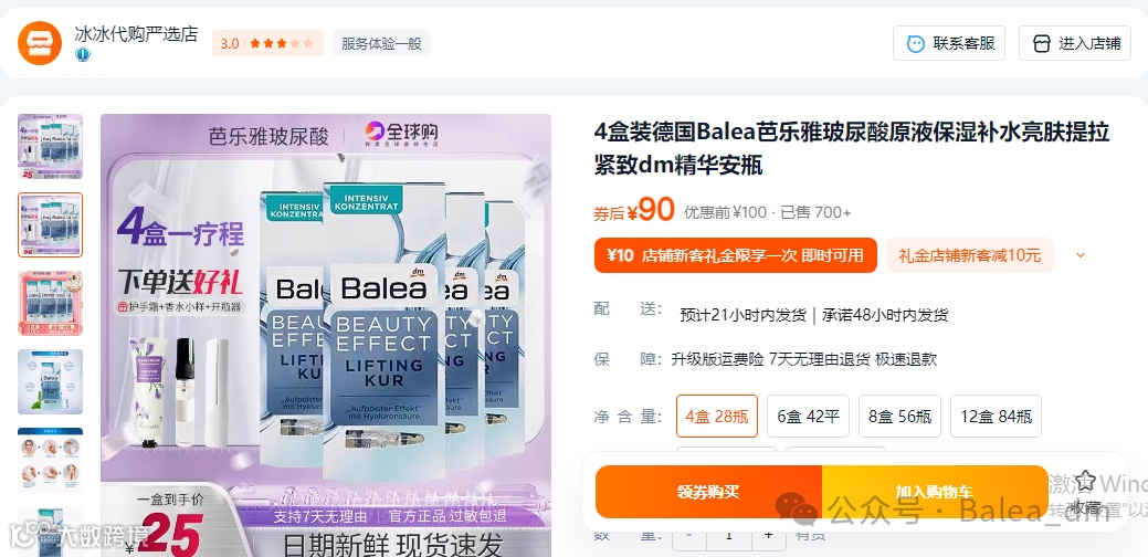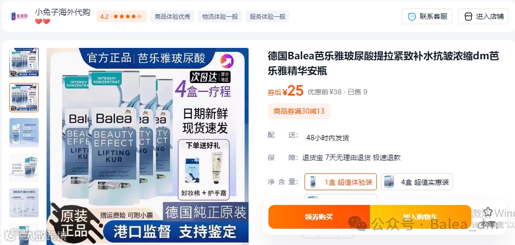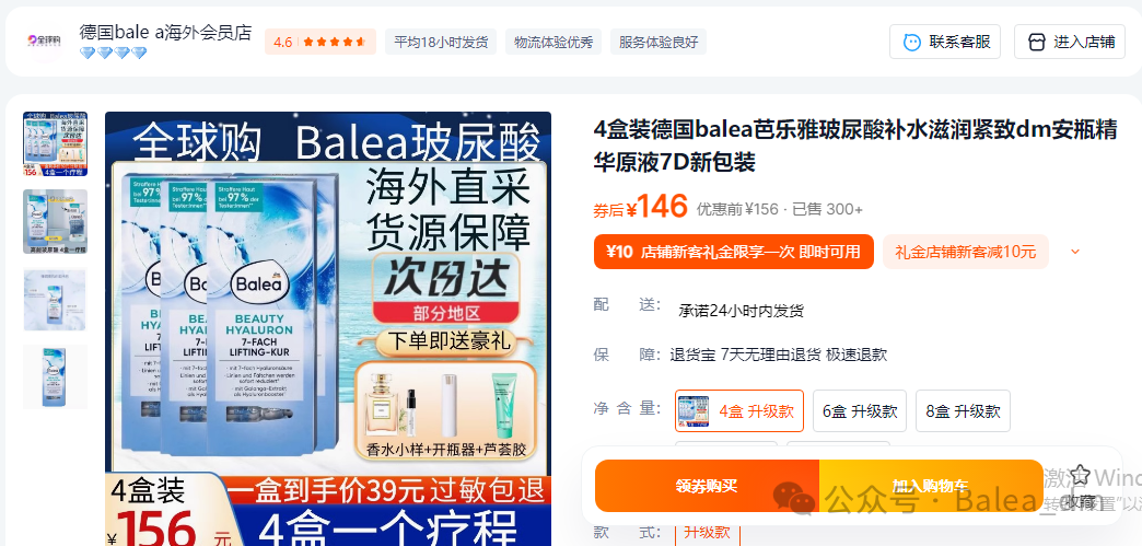 继德国Balea Beauty Hyaluron lifting tretman za lice, 7 ml 进入中国市场后,Balea dm为告知顾客,该产品不在上述店铺授权。
