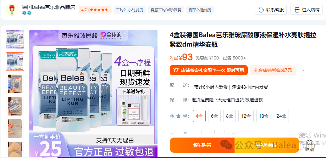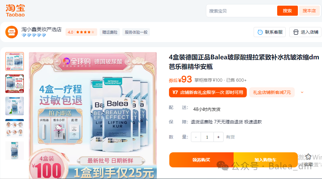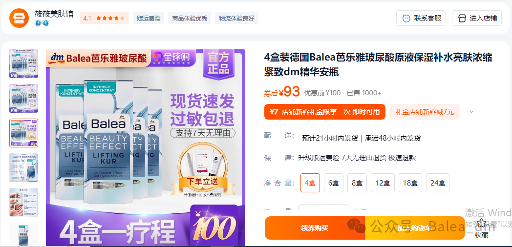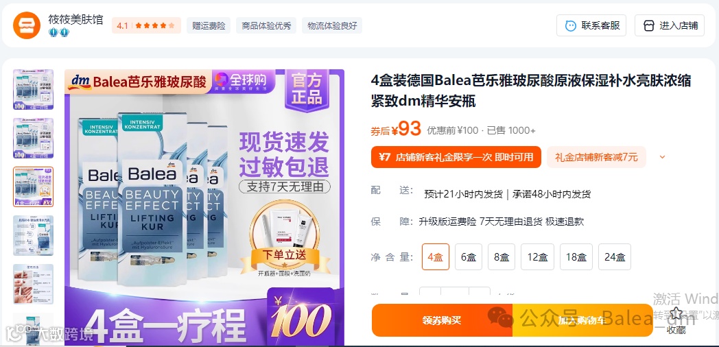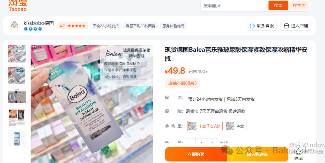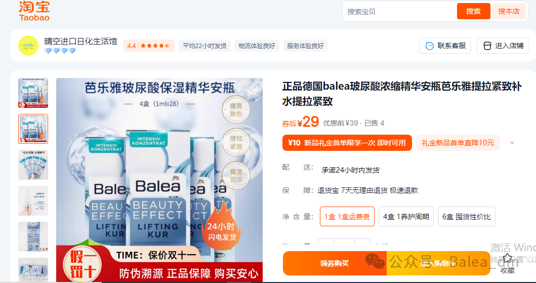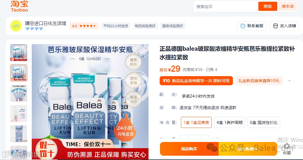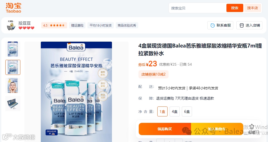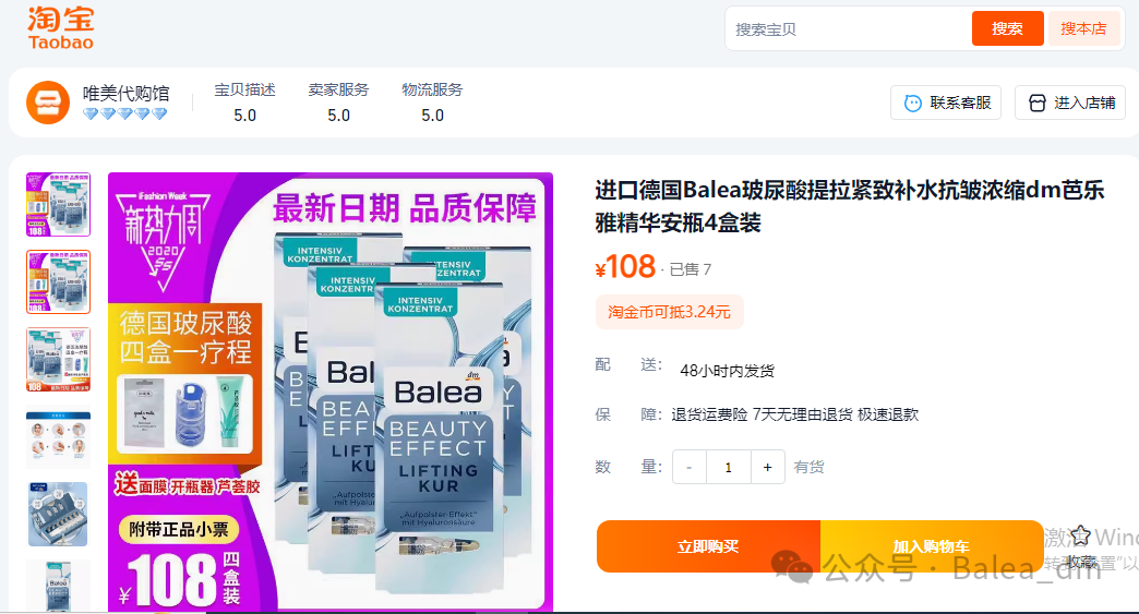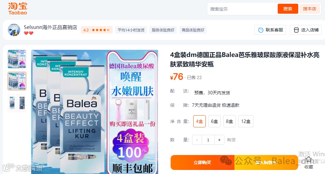 继德国Balea Beauty Hyaluron lifting tretman za lice, 7 ml 进入中国市场后,Balea dm为告知顾客,该产品不在上述店铺授权。