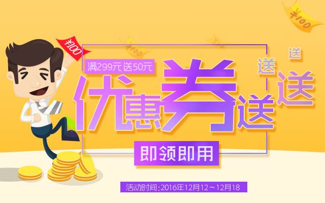 2、此优惠劵使用时效:2016年12月19日-2016年12月31日。