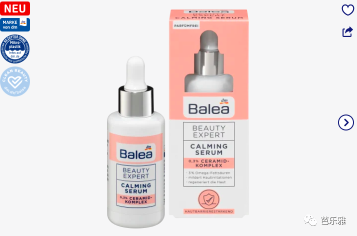 含有 0.3% 神经酰胺复合物的镇静精华液可增强皮肤的保护屏障并促进其再生。含有有价值的磷脂和欧米茄脂肪酸的配方已被证明可以改善水分*并将其储存在皮肤中。精华液可抵消皮肤老化迹象,使皮肤显得更加均匀和光滑。**由于具有舒缓作用,皮肤刺激和发红减少,干燥皮肤的紧绷感得到缓解。**此外,益生元促进天然皮肤微生物组的平衡。带来放松和柔软的肌肤感觉和容光焕发的肤色。**