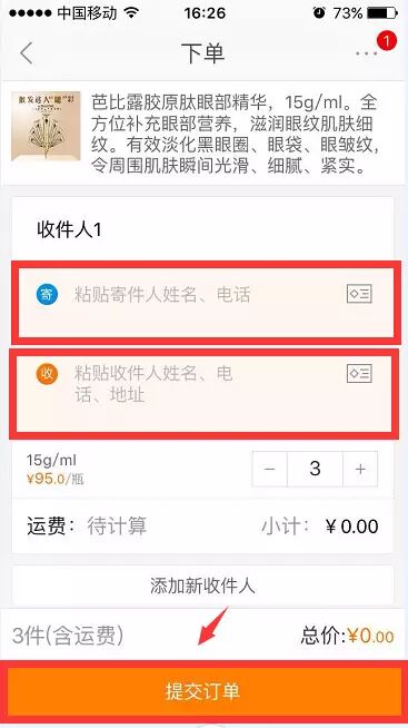 步骤十:复制粘贴寄件人和收件人信息,点击提交