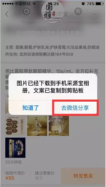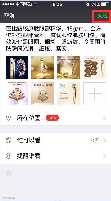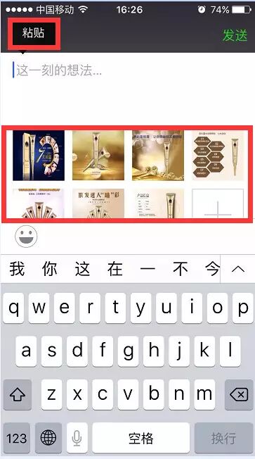 步骤六:至微信页面:选择已经下载好的图片,直接粘贴商品描述: