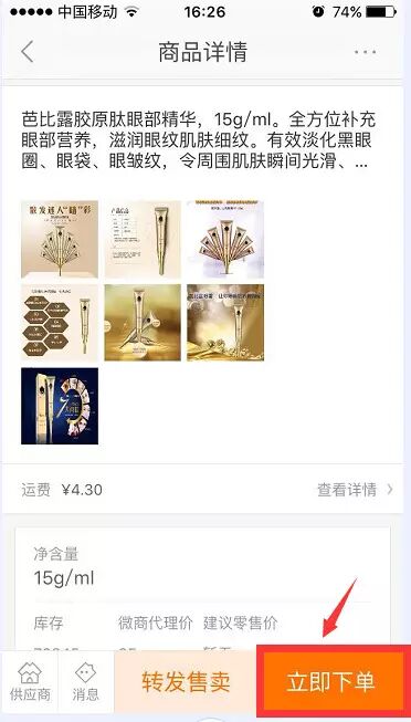 但是,供货……却是所有微商最头疼的问题。做微商,先是要被传销一样的“囤货”,囤到的货还是未必是真货,更不用说是不是真正低价的货。艾琳这样的微商姑娘,并不缺乏成功的决心,但是缺乏成功的工具和途径。
