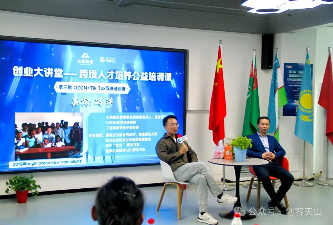 活动特别设置“出海会客厅”对话环节,特邀众维股份跨境事业部高级合伙人、首席运营官OZON官方金牌讲师、工信部高级电子商务师冯洋围绕“新疆企业如何借势跨境新风口”展开深度探讨,为现场学员提供了战略布局与实战落地的双维指导。