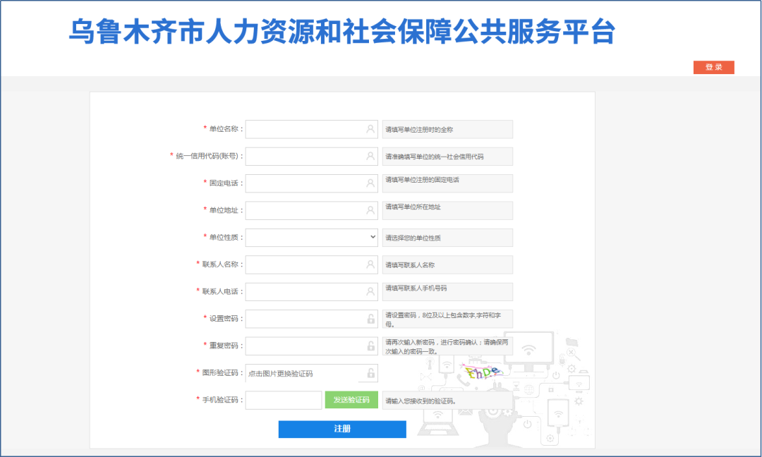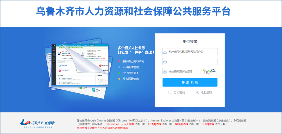 点击“马上注册”,进入注册页面,已在该服务平台注册过的用人单位可直接登录,如下图:
