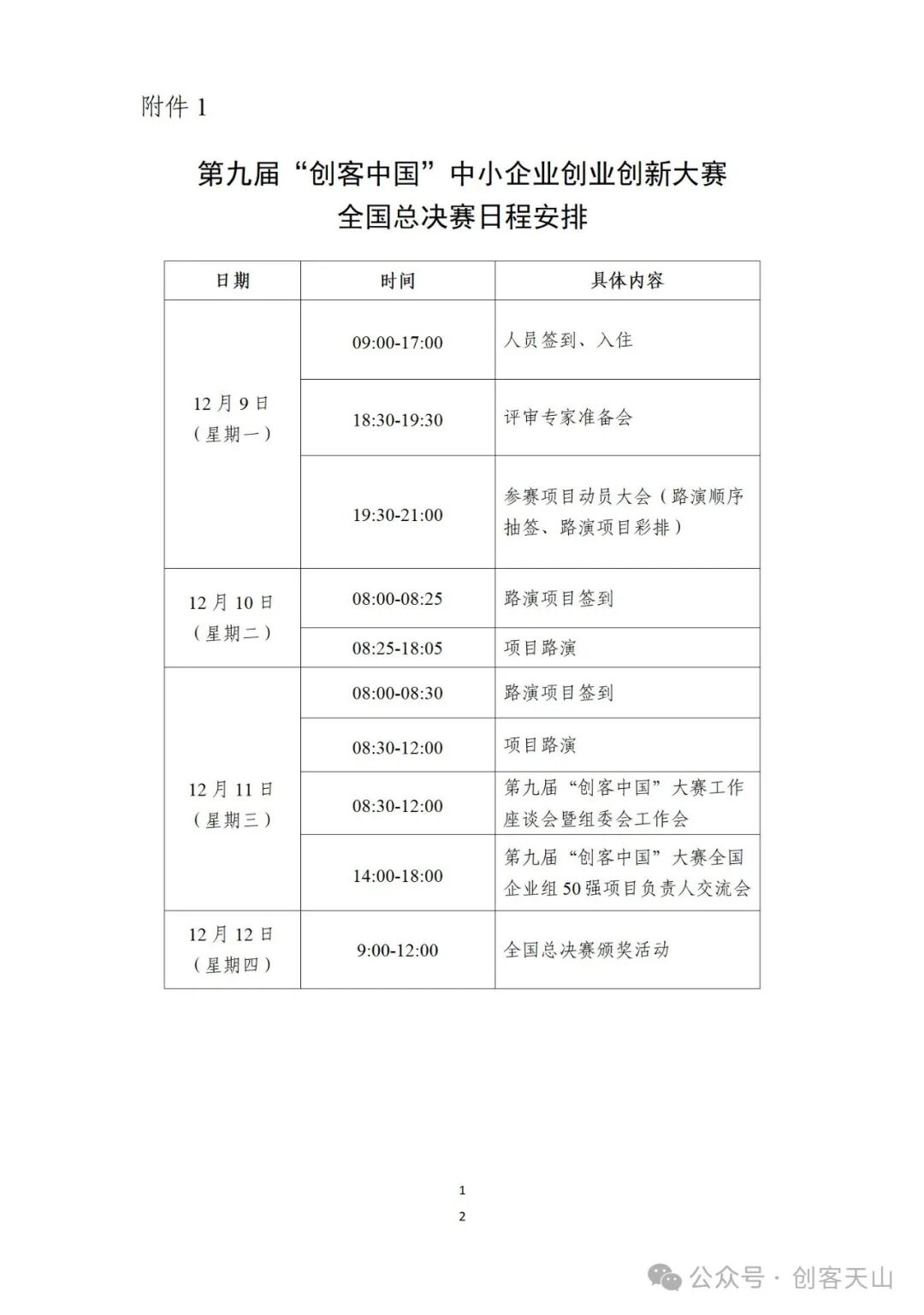 (一)举办第九届“创客中国”全国总决赛项目路演评审和颁奖活动(日程安排见附件1)。
