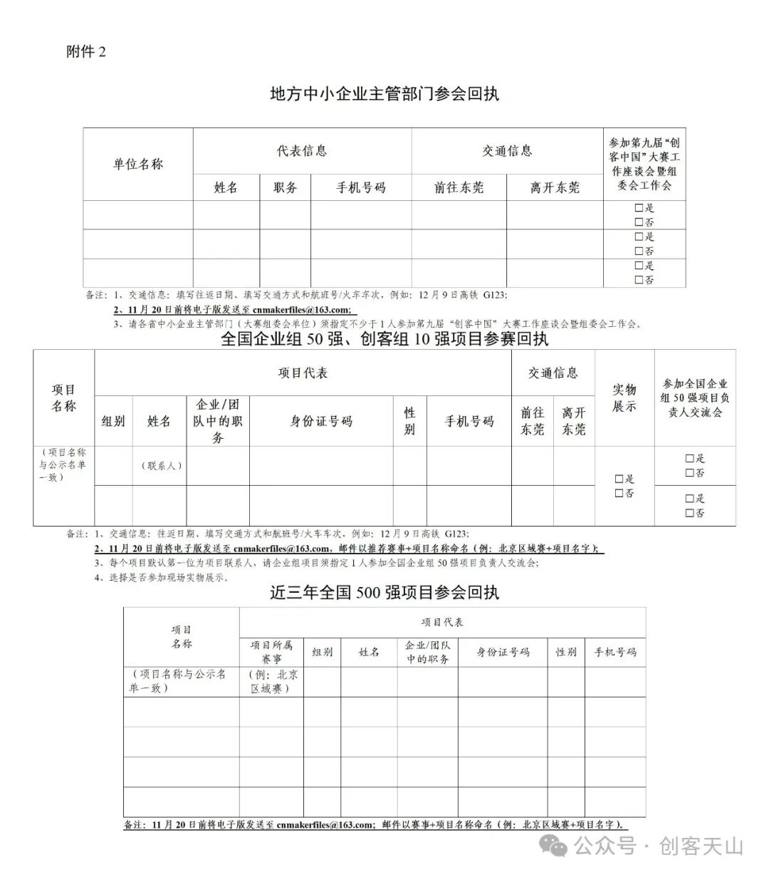 (一)请各地中小企业主管部门(大赛组委会单位)、专题赛主办单位于11月20日前将参会回执(见附件2)收齐后发送至指定邮箱cnmakerfiles@163.com。