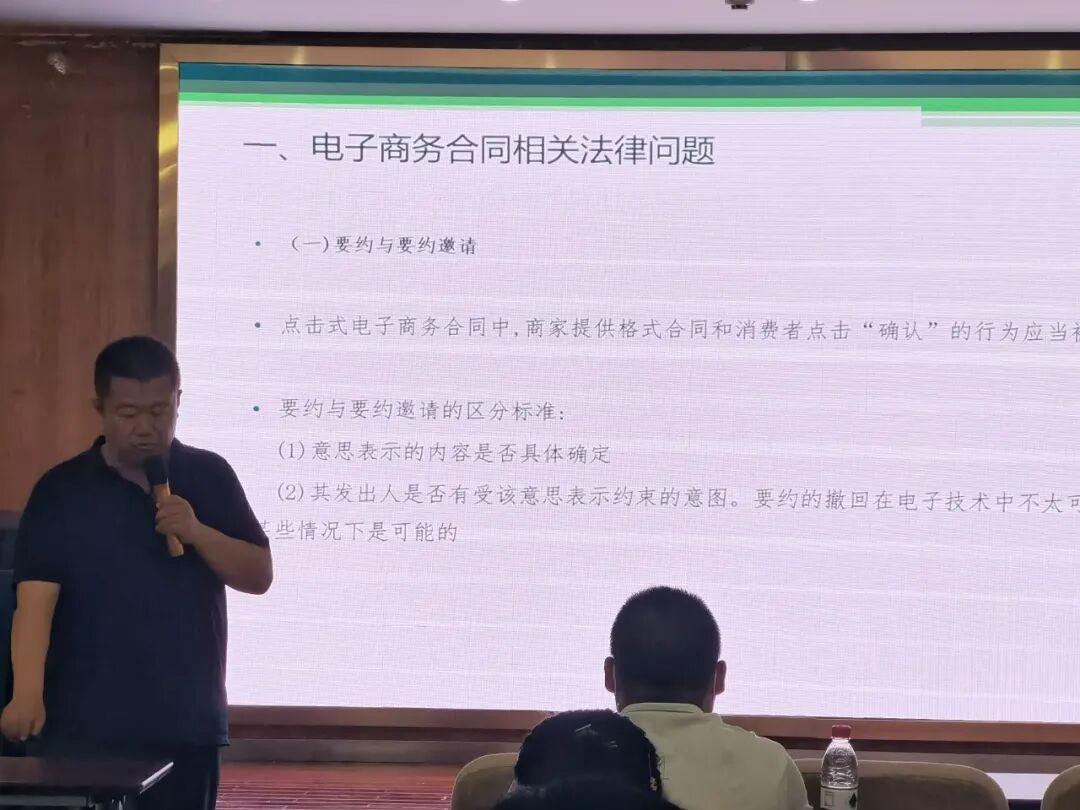 此次活动特邀了新疆克兰律师事务所主任、新疆律师政府法律顾问委员会委员、新疆公益法律服务工作委员会委员米裕丰律师对电商法律法规进行了详细的解说分享,在场的企业都从中有所收获。