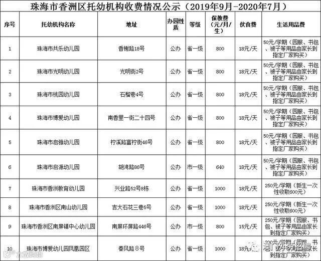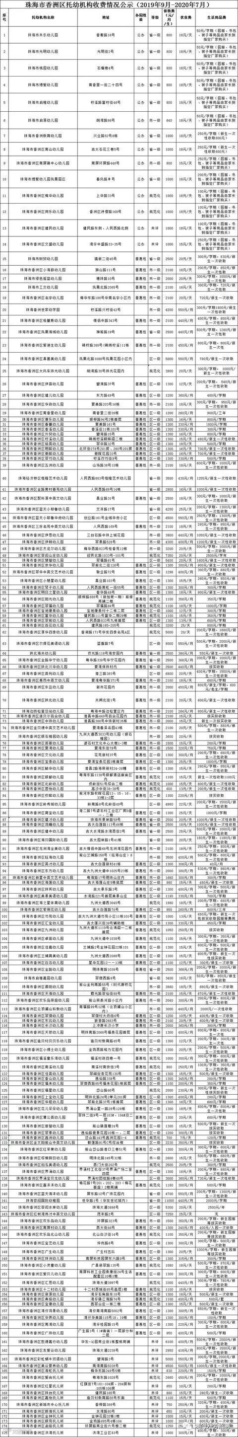 《珠海市香洲区托幼机构收费情况公示(2019年9月-2020年7月)》文件