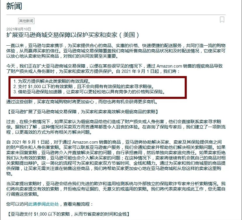 因此,亚马逊扩大“交易保障索赔政策”的保障范围,能够为买家和卖家提供双向保护。