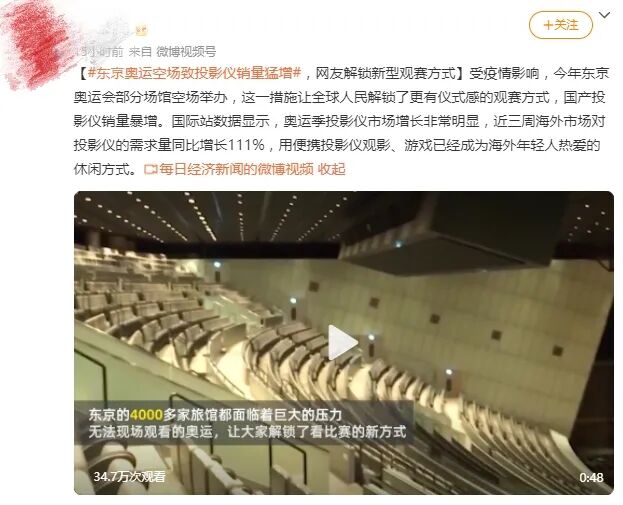 因为东京奥运会的“空场举行”,童绍剑(长沙奔映电子科技的总经理)第一次接到来自日本的订单。对方是日本线下投影仪店铺的老板,几个月前,他通过阿里巴巴国际站找到童绍剑时,说日本消费者正在讨论“本届奥运如何观看”,他要提前为奥运囤货。