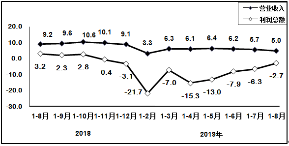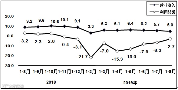 1-8月,电子器件制造业营业收入同比增长9.8%,利润同比下降19.6%。