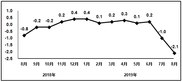 8月,电子信息制造业生产者出厂价格同比下降2.1%,比上月降幅扩大1.1个百分点。1-8月,电子信息制造业生产者出厂价格同比下降0.2%。