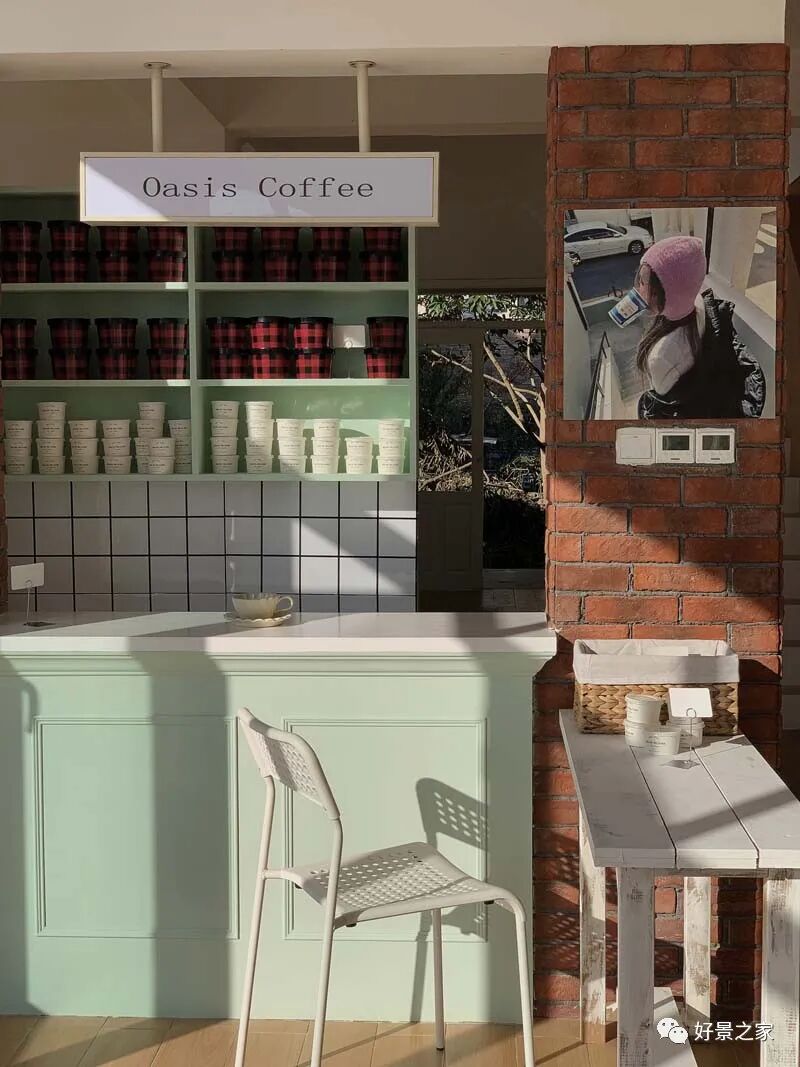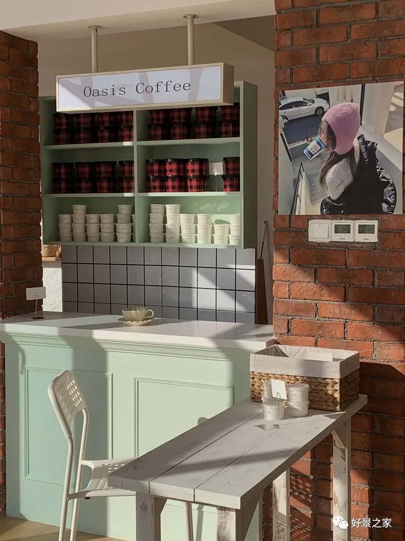 美式红砖咖啡吧台,配上雪糕杯的搭配,奢华又透露一丝甜美气息