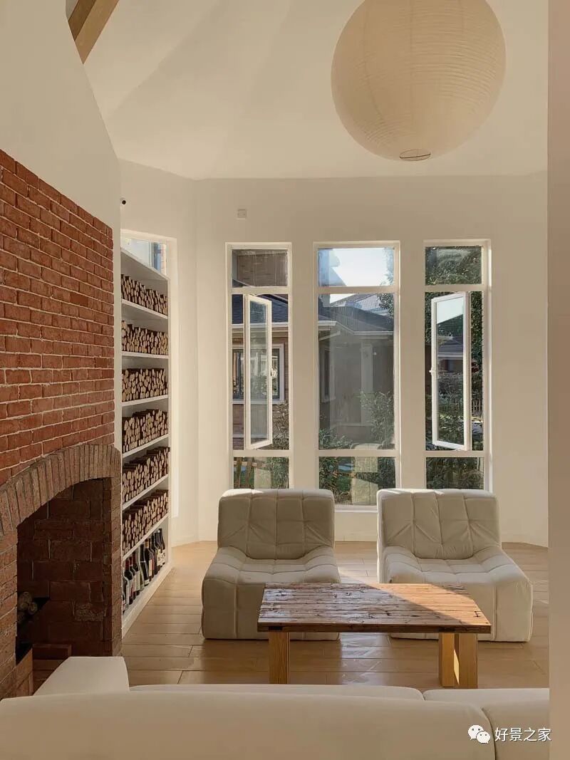 美式壁炉豪华老钱风客厅大客厅,环形落地窗,全天光线充足!