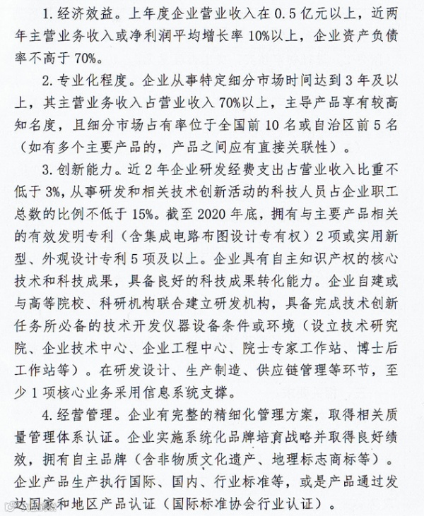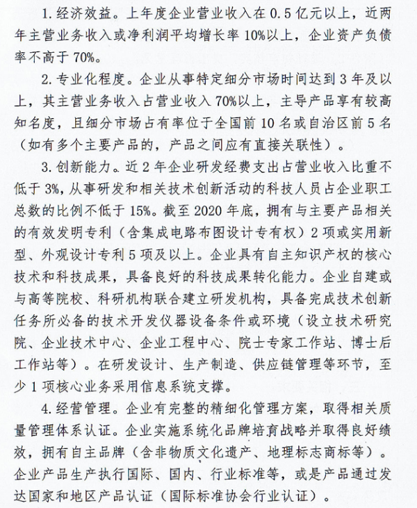 2021年新疆专精特新“小巨人”企业申报条件