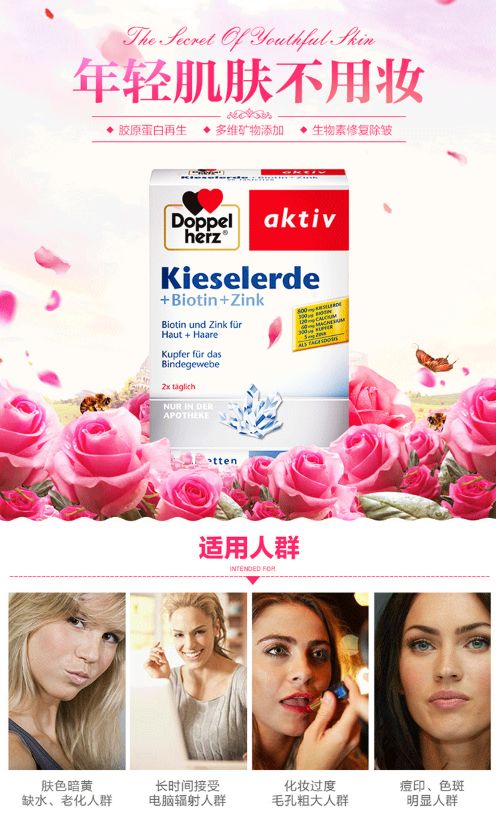 德国进口Doppelherz双心 胶原蛋白精华素改善肤质肌肤补水美白养颜 德国进口60片