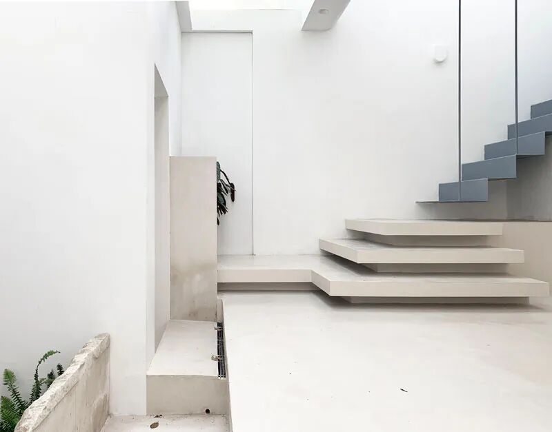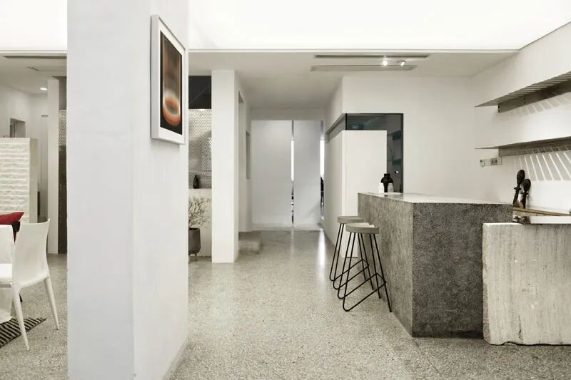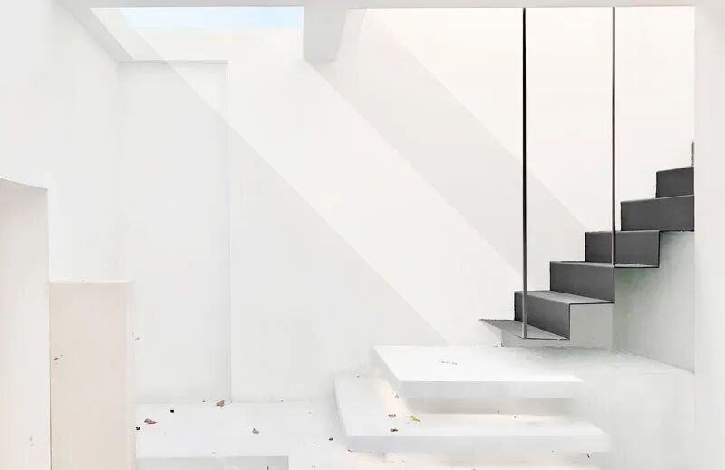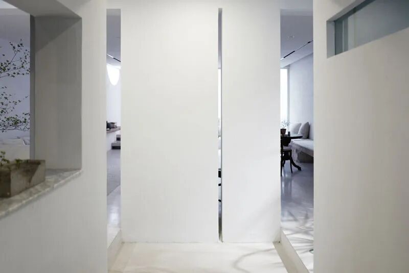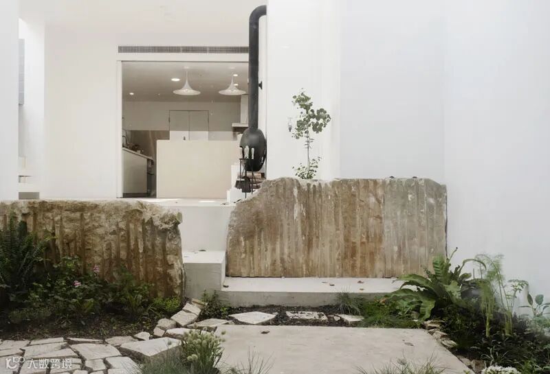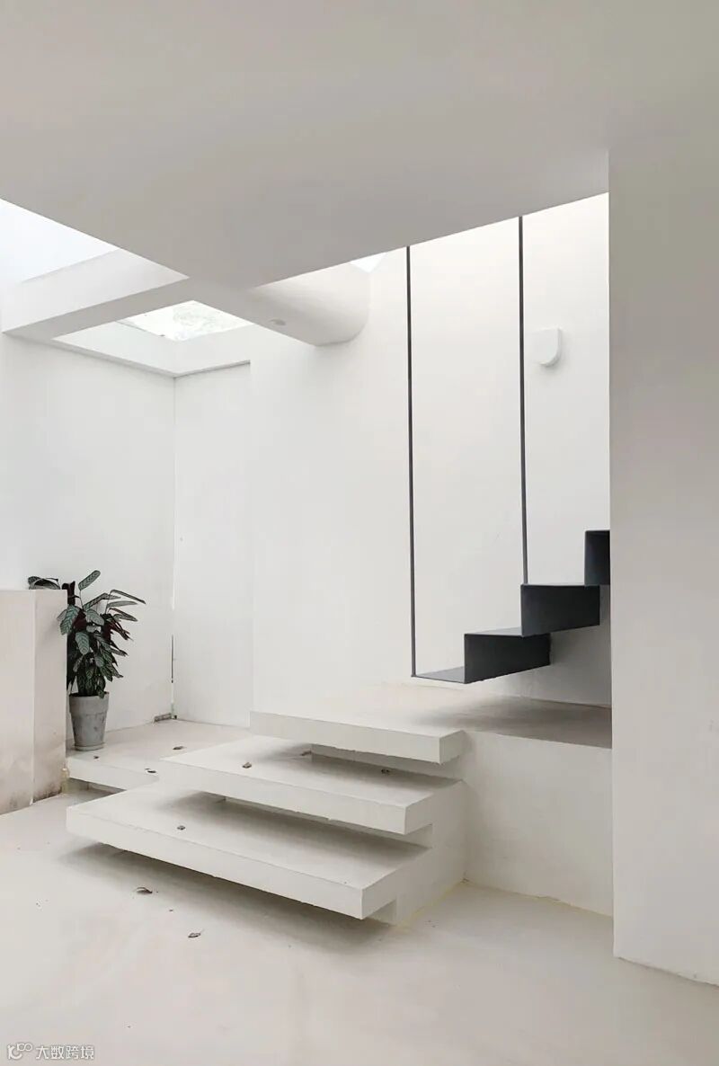 利用钢结构进行局部加固及改造,楼道空间与客厅以及内院全部打通,达到实现与空间的最大程度的开放。
