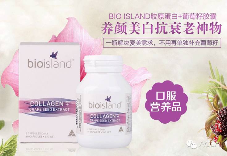 Bio Island葡萄籽胶原蛋白,是Bio Island独家配方,市面上唯一含有胶原蛋白和干葡萄籽提取物的保健品,提供强大的营养饮食,女性必备!浓缩的混合海洋胶原蛋白提供高质量的蛋白质量源。含有葡萄籽提取物,给身体提供良好的抗氧化剂。