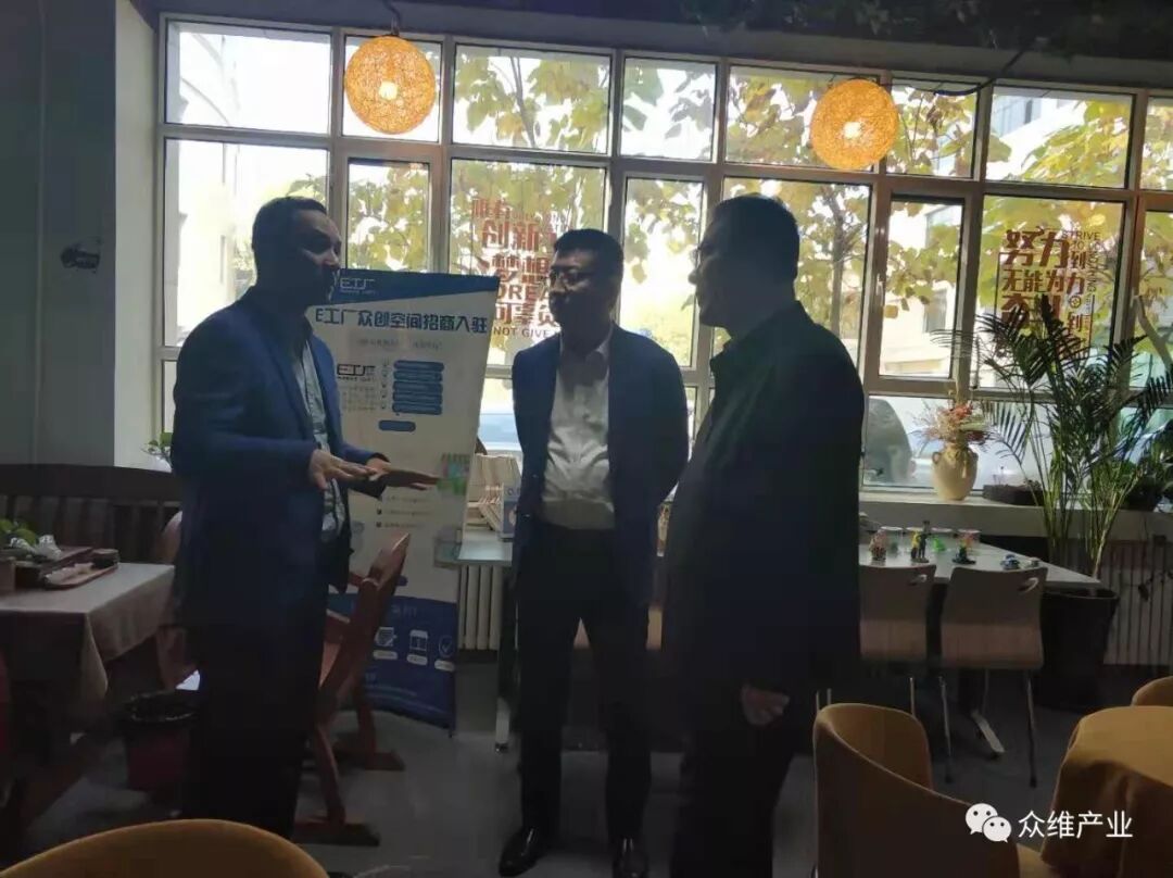 2018年10月26日,E工厂众创空间迎来了启迪科技城集团一行参观指导,乌鲁木齐高新技术开发区高新技术创业服务中心副主任阿布力克木·艾再孜、众维股份总经理曹建山进行了热情的接待。