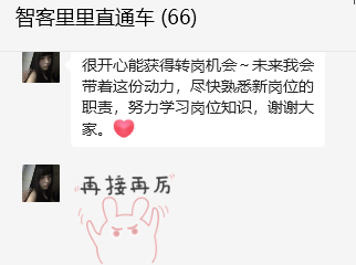 在评估了Ms Xie的综合能力、学习潜力和强烈意愿后,公司高度重视小伙伴的个人发展诉求,为她提供了宝贵的转岗机会——从售前组长转为运营助理!这意味着她将放下过往的舒适区,从新的起点重新出发。
