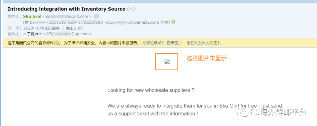 EC海外群邮平台有些客户有疑问,在EmailCamel发的带有图片的邮件,客户收到后看不到图片显示,不知道是什么原因?