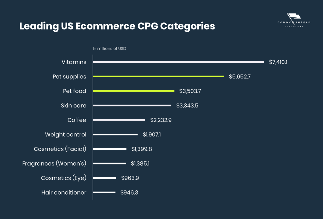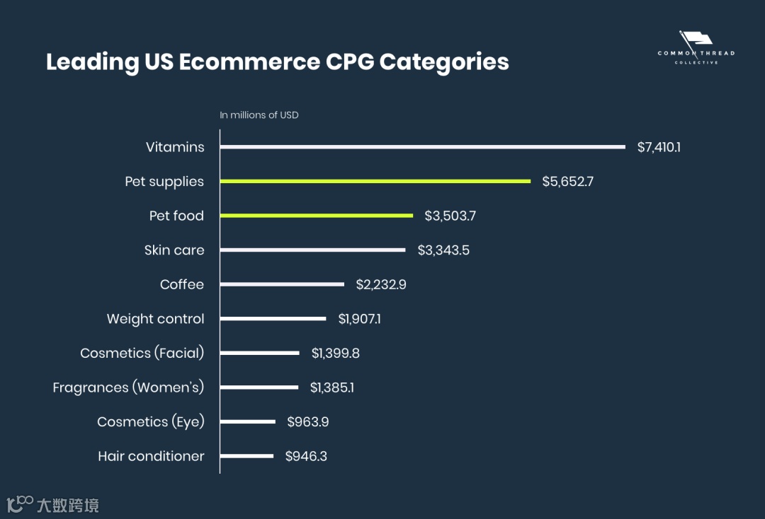 在美国市场,宠物用品,不止在宠物经济体系内,放宽到美国所有消费品,增速也在第 2。
