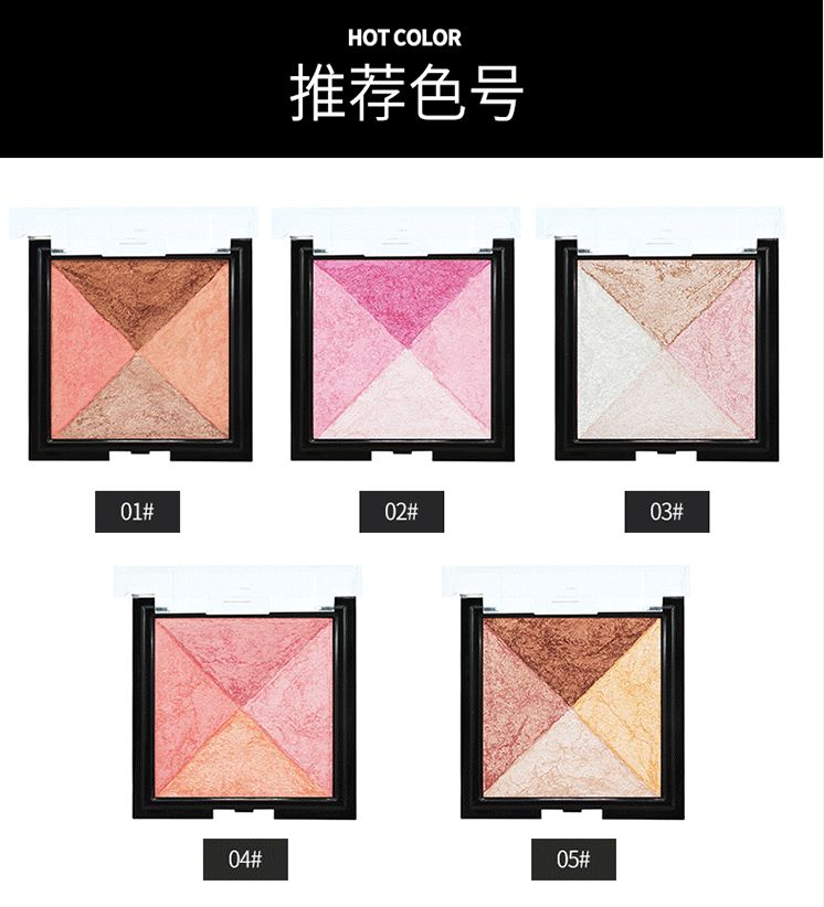 腮红是提升气色的法宝,还能起到修饰脸型的作用,腮红可以根据自己的肤色和爱好来选择颜色,以下几款都很美,小编自留4号西柚橘色,哈哈!比较自然百搭。