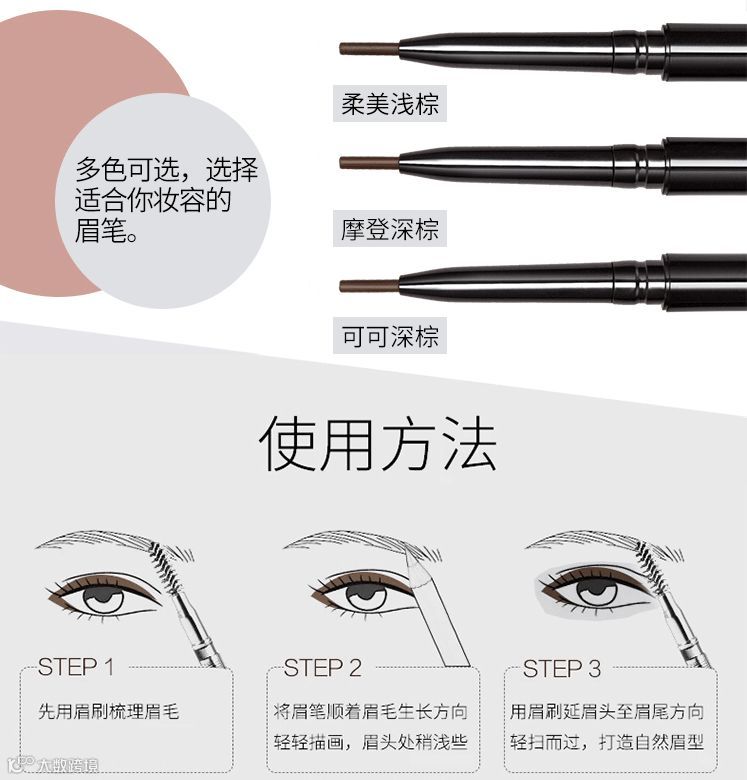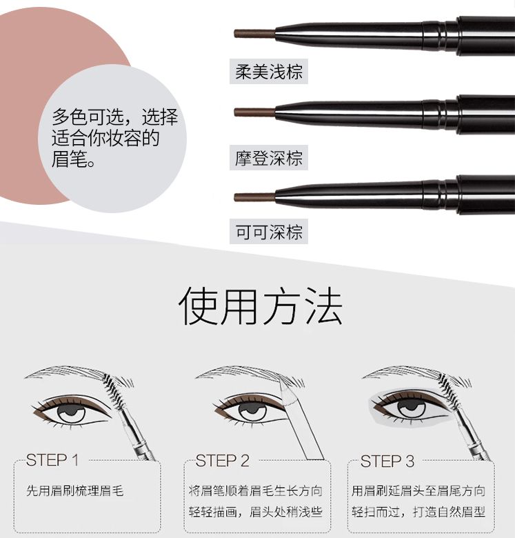 眉毛该怎么画呢?什么脸型就画什么眉形,眉形决定你的气质。推荐一款泰国思薇娜SIVANNA眉笔,适合各种皮肤,防水防汗,颜色可根据自己的肤色、发色、甚至美瞳,来选择相近的颜色哦~