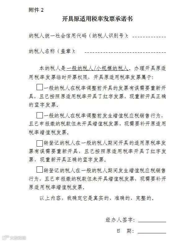 《公告》规定,自2019年9月20日起,纳税人需要通过增值税发票管理系统开具17%、16%、11%、10%税率蓝字发票的,应向主管税务机关提交《开具原适用税率发票承诺书》,办理临时开票权限。临时开票权限有效期限为24小时,纳税人应在获取临时开票权限的规定期限内开具原适用税率发票。纳税人办理临时开票权限,应保留交易合同、红字发票、收讫款项证明等相关材料,以备查验。