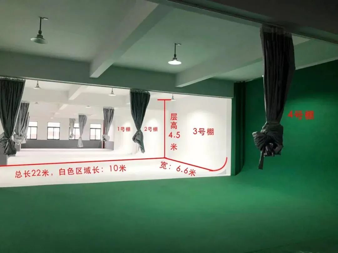 单棚面积:棚深20m、宽6.6m、挑高4.5m,含白、绿两种颜色,其中白棚X3+绿棚X1,适合淘宝电商、商业广告、访谈节目、艺人杂志等使用。