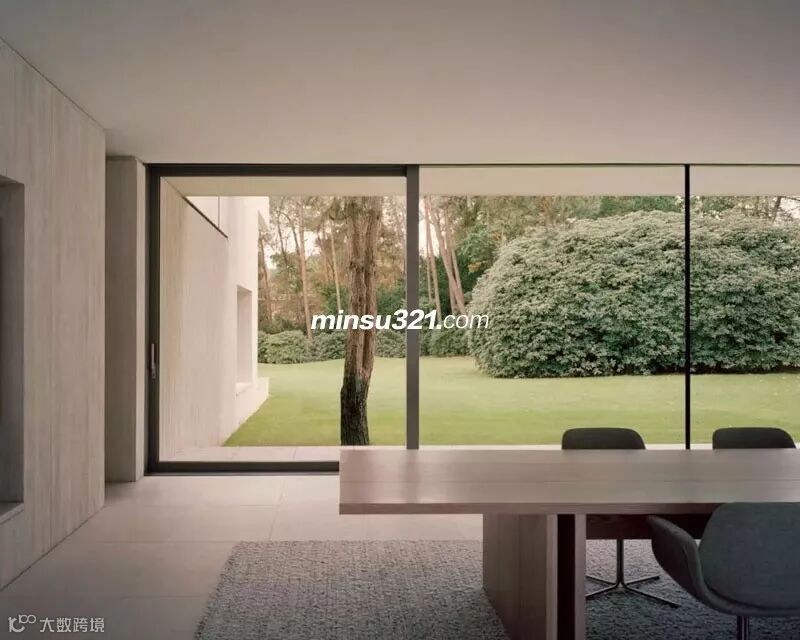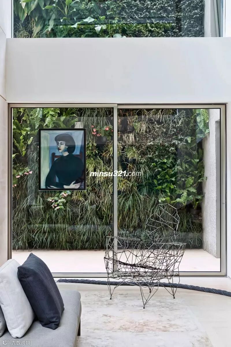 这个区域既可以用来办公,也可供一家人用餐。陈列架上的艺术品皆来自西班牙艺术家Jesús Perea。