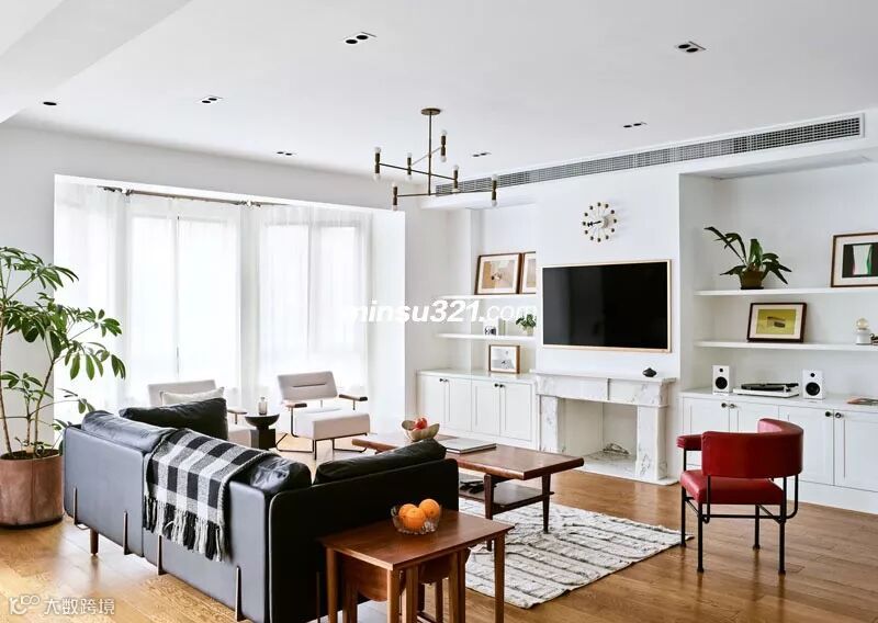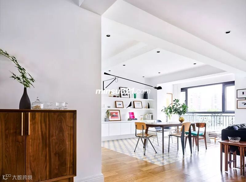 房屋北侧有一个六角形的窗,像极了伦敦的维多利亚时代老房子,于是设计师干脆以这个英式元素为出发点,顺势在客厅中设计了壁炉与两侧的书架,让典型的英式装饰风格融入到山水相映的中式景观中。