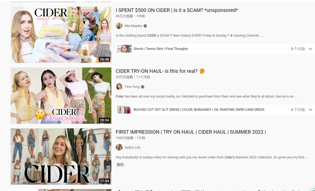 采用实时零售的生产模式,这是Cider与Shein的相同之处。而在品牌定位和推广上,Cider采取了有别于Shein的策略。