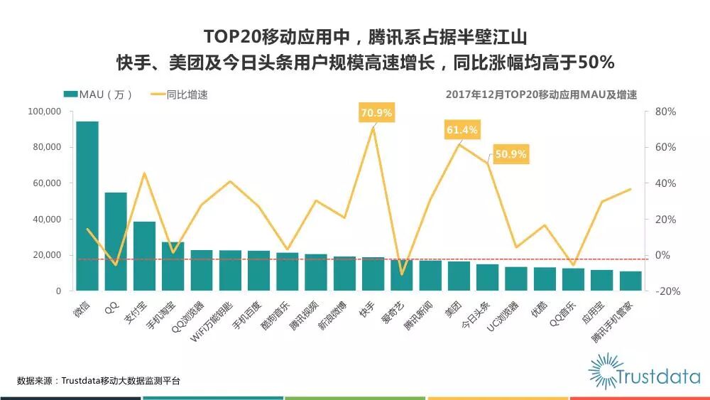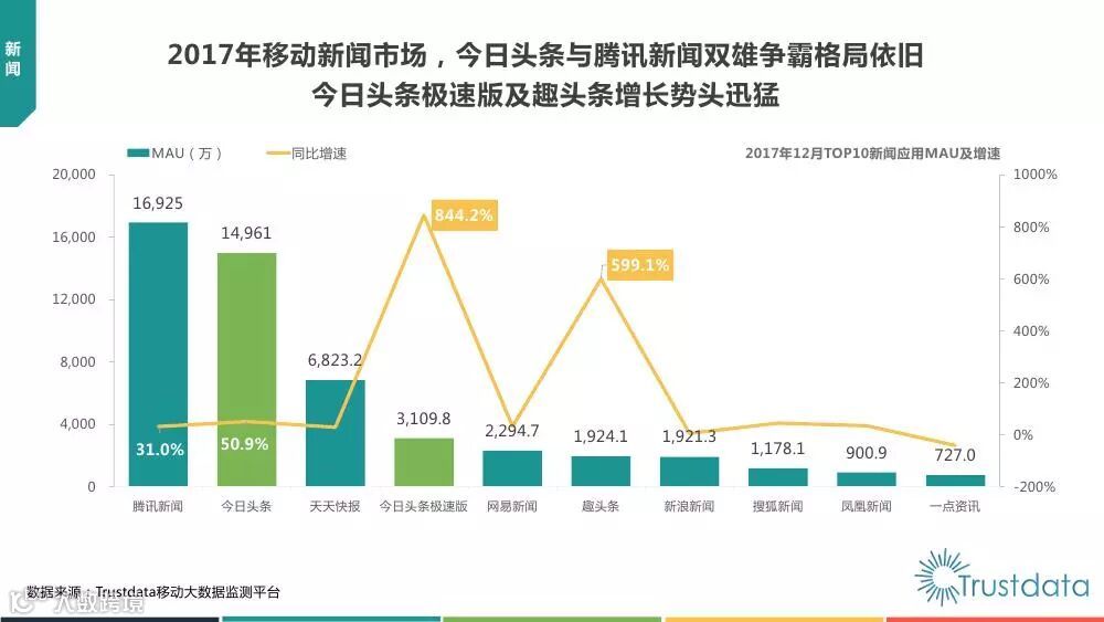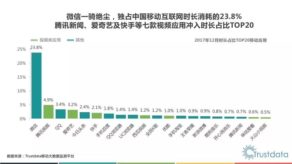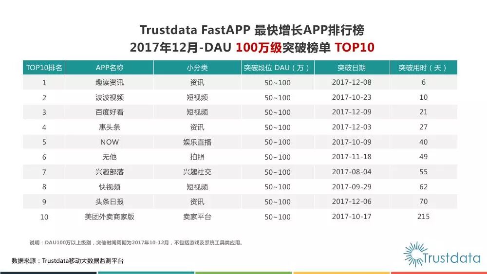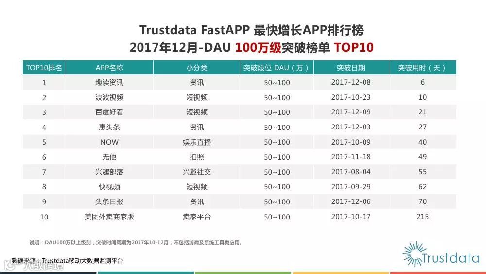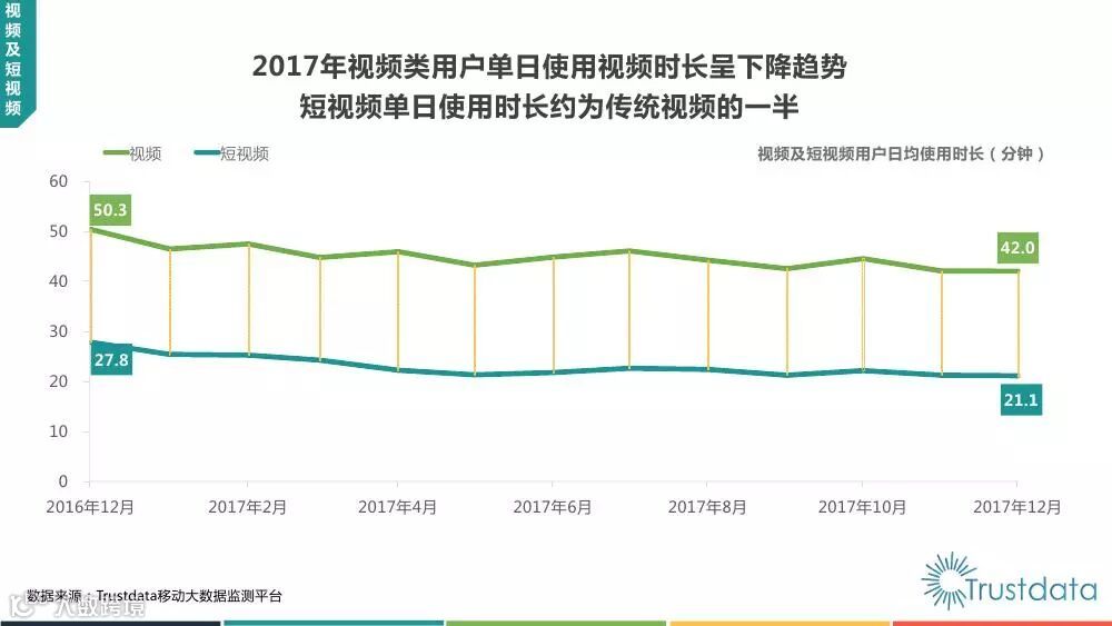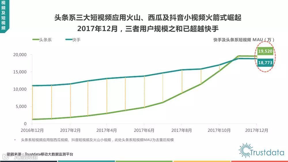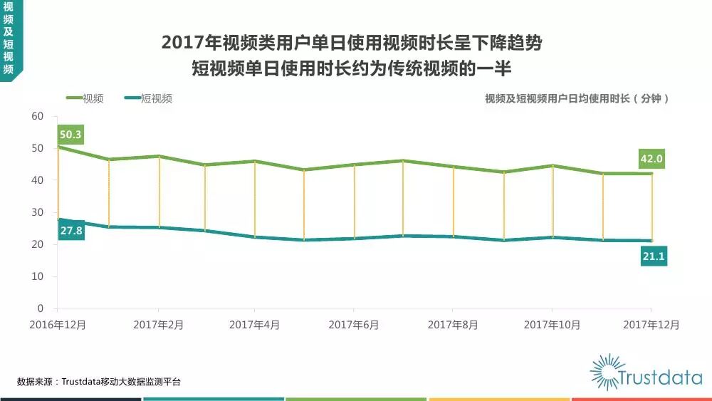 近日,移动互联网大数据监测平台Trustdata发布2017年中国移动互联网行业发展分析报告。针对移动互联网重点细分领域进行多维度解读,并对共享单车、短视频等17年话题性领域重点分析。报告中指出,短视频领域以127.1%的增速位列第二,仅次于共享单车,并且以40.3%的用户粘性于今年中旬首次超越视频领域,成为市场"新宠"。