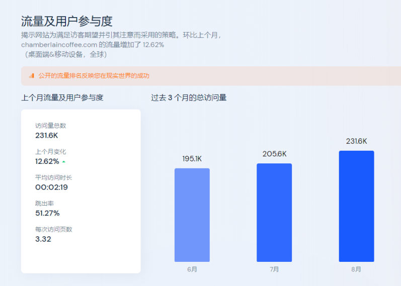 Emma Chamberlain在个人社交账号中添加了Chamberlain Coffee的官网地址和官方社交账号,通过个人社交账号为官方账号引流增粉。目前chamberlaincoffee.com的月均流量维持在20万上下,8月份23万,环比上个月流量增加了12.62%。