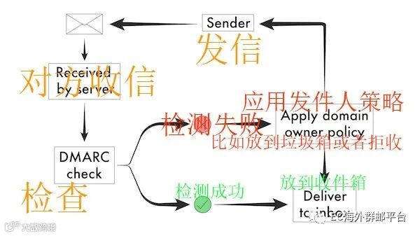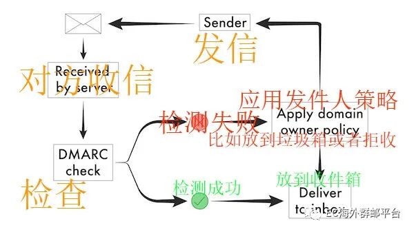 DMARC基本上是传入电子邮件的验证系统。它检查邮件的“发件人”电子邮件中的域是否与邮件实际通过的域匹配。如果域不匹配,则电子邮件将无法通过DMARC检查。